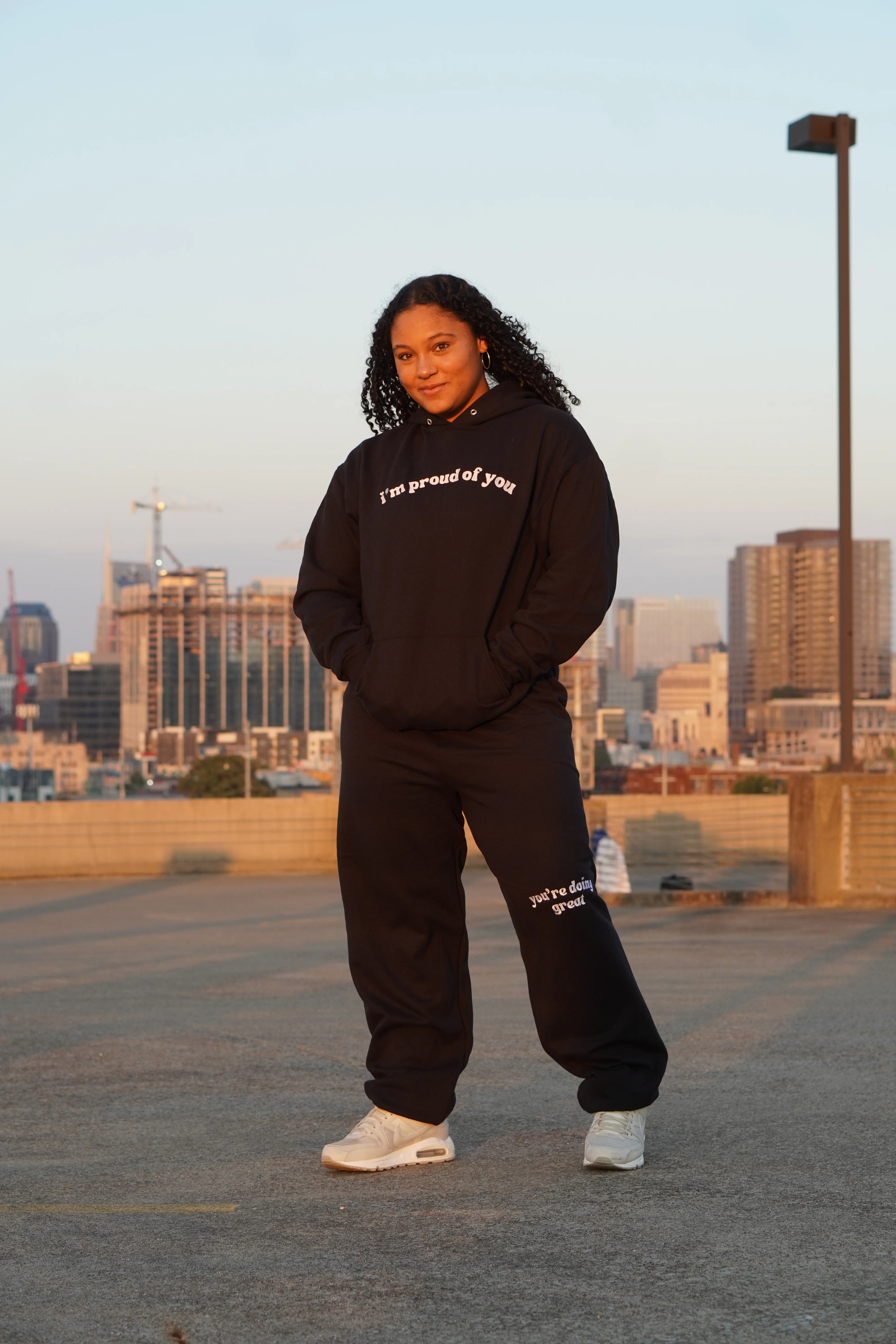 - Front center chest print reads I’m Proud of You in white font