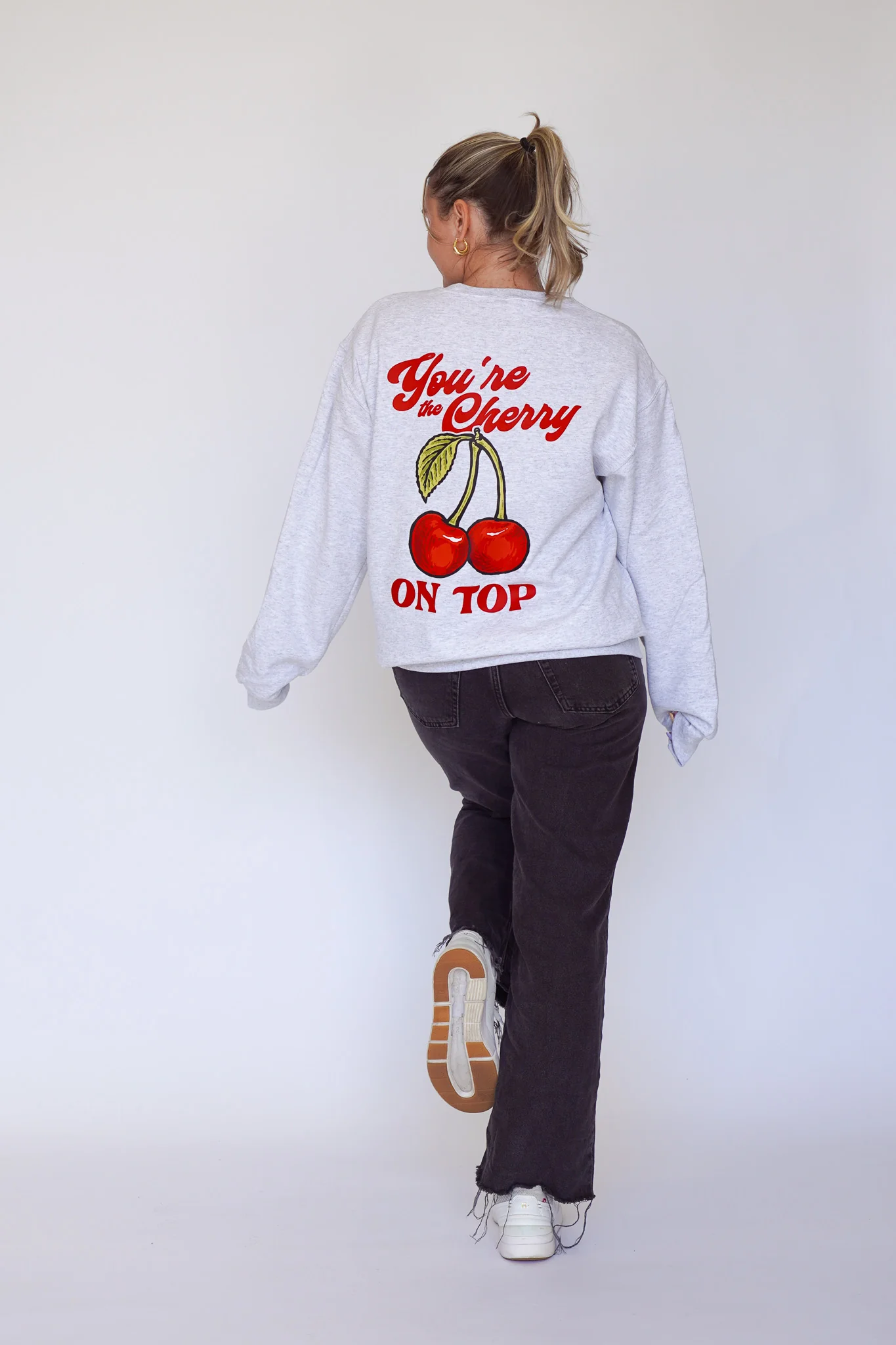 Our Origins crewneck featuring the You Are the Cherry on Top design.